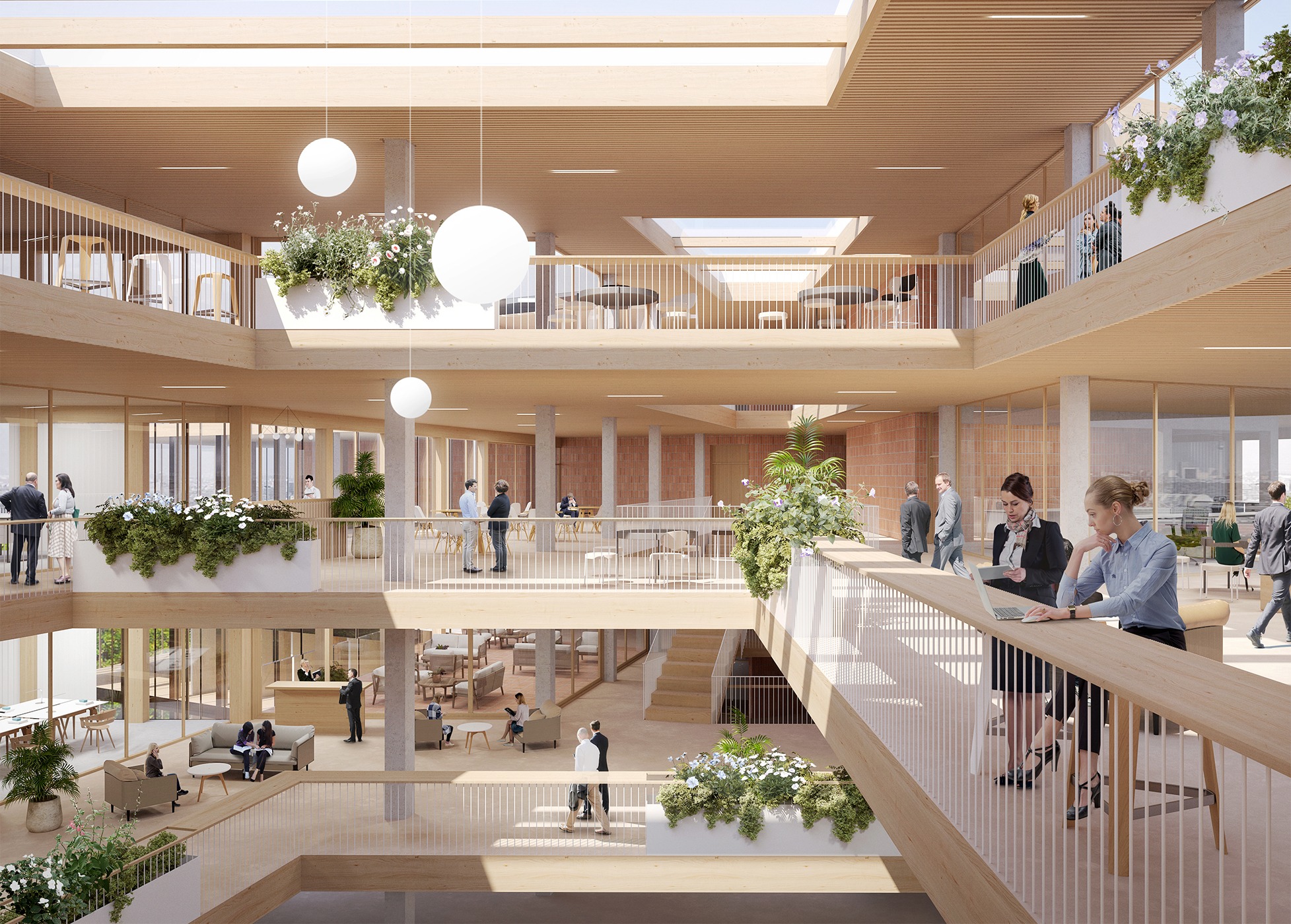 Das Tragwerk ist auf die unterschiedlichen Nutzungsanforderungen beider Baukörper ausgelegt und ermöglicht eine flexible Raumaufteilung. Durch die Holz-Hybrid-Konstruktion wird das Projekt zugleich ökologisch wegweisend und architektonisch anspruchsvoll umgesetzt.